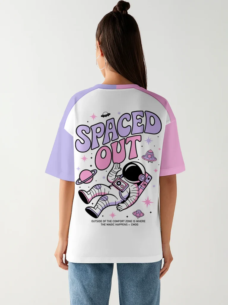 Step into another dimension of comfort and style with our Spaced Out Oversized T-Shirt. Designed for dreamers and explorers, this tee combines cosmic vibes with laid-back streetwear aesthetics. Featuring a vibrant astronaut graphic and pastel color-block sleeves, it’s perfect for those who love to stand out while staying comfortable. Whether you’re chilling with friends, running errands, or simply lost in your own universe, this tee keeps you effortlessly cool and confident.